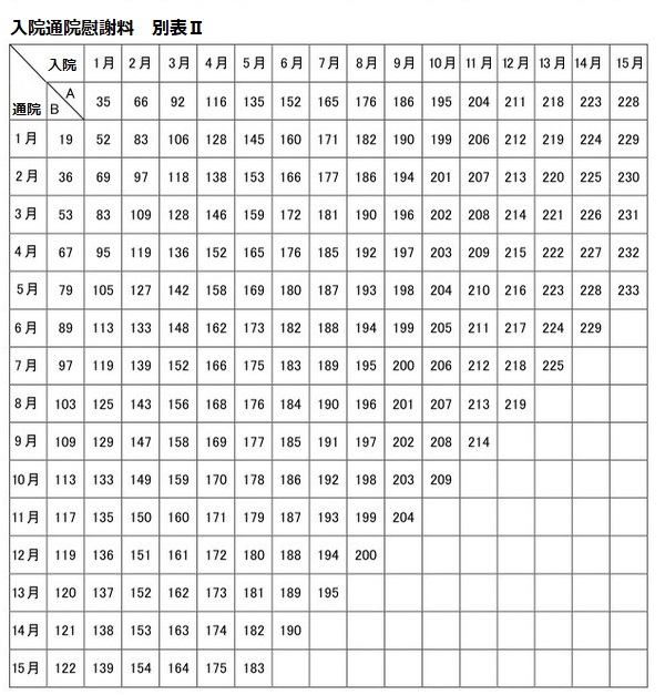 ただし、むちうち症で他覚所見(画像上の異常などの客観的な所見のことです。)がない場合には、別表Ⅱを使うことになります。